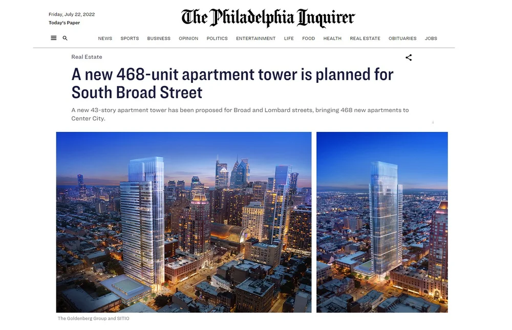 Avenue Of The Arts Tower Project Featured In The Philadelphia Inquirer Sitio Architecture Urbanism
